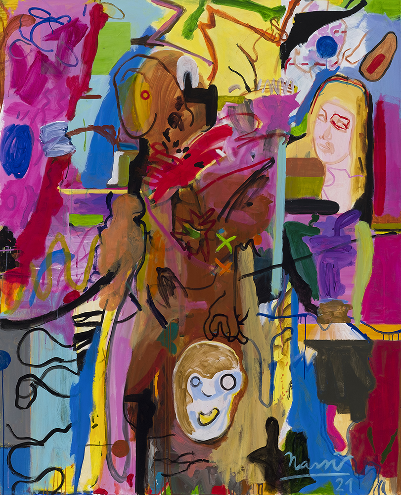 آنچه در نگاه نخست در آثار نصیر به چشم میخورد، رنگهای درخشانی است که بر روی بومها و آثار روی کاغذ هنرمند شکل گرفتهاند. با این حال، با نگاهی دقیقتر، عناصر و نحوهی پراکندگی آنها در سطح و روابط این عناصر با یکدیگر اهمیت ویژهای پیدا میکنند و مشغولیت ناب و خالص هنرمند با نفس نقاشی را نمایان میکنند؛ مشغولیتی که همراه با سیر و سلوک در ناخودآگاه خلاق او شکل میگیرد و نشاندهندهی شوق زندگی، مفهوم زیبایی و نیز مرگ نزد هنرمند است. علی نصیر با الهام از زندگی روزمره، ادبیات، سینما و رویدادهای معمول، که ممکن است یک برنامهی خبری یا یک خاطرهی شخصی باشد، تصویری از یک ستارهی پاپ یا روایتی تاریخی مانند بریدن سر هولوفرنس …، با دوری از ارجاعات مستقیم، تفسیری تجربی و شخصی از این اتفاقات را در نقاشیهای خود به تصویر میکشد.