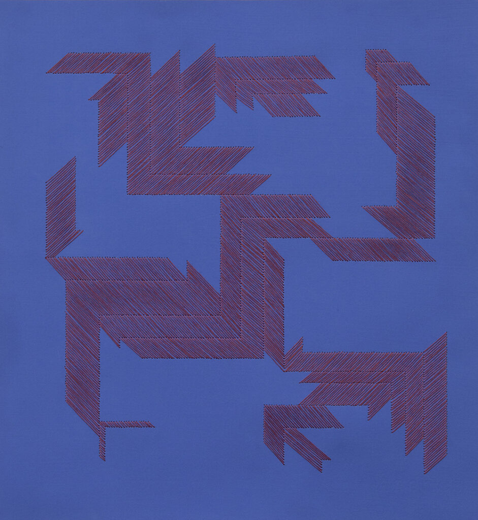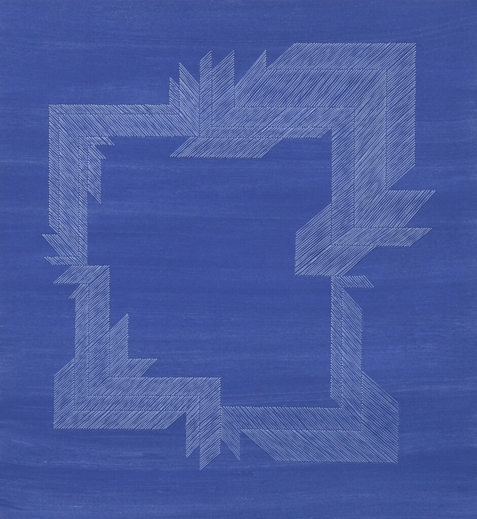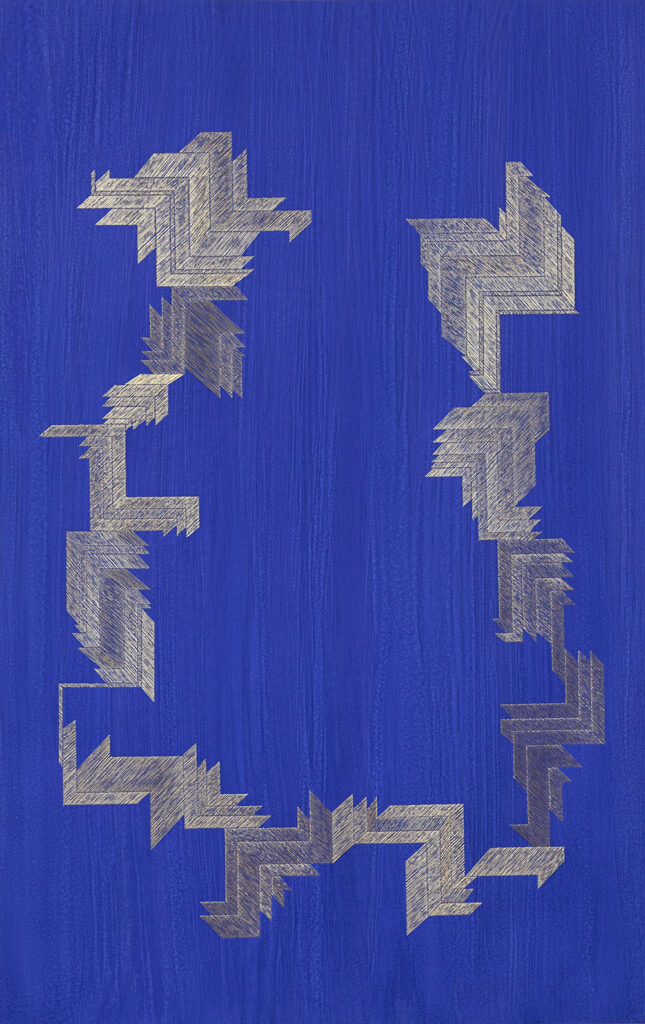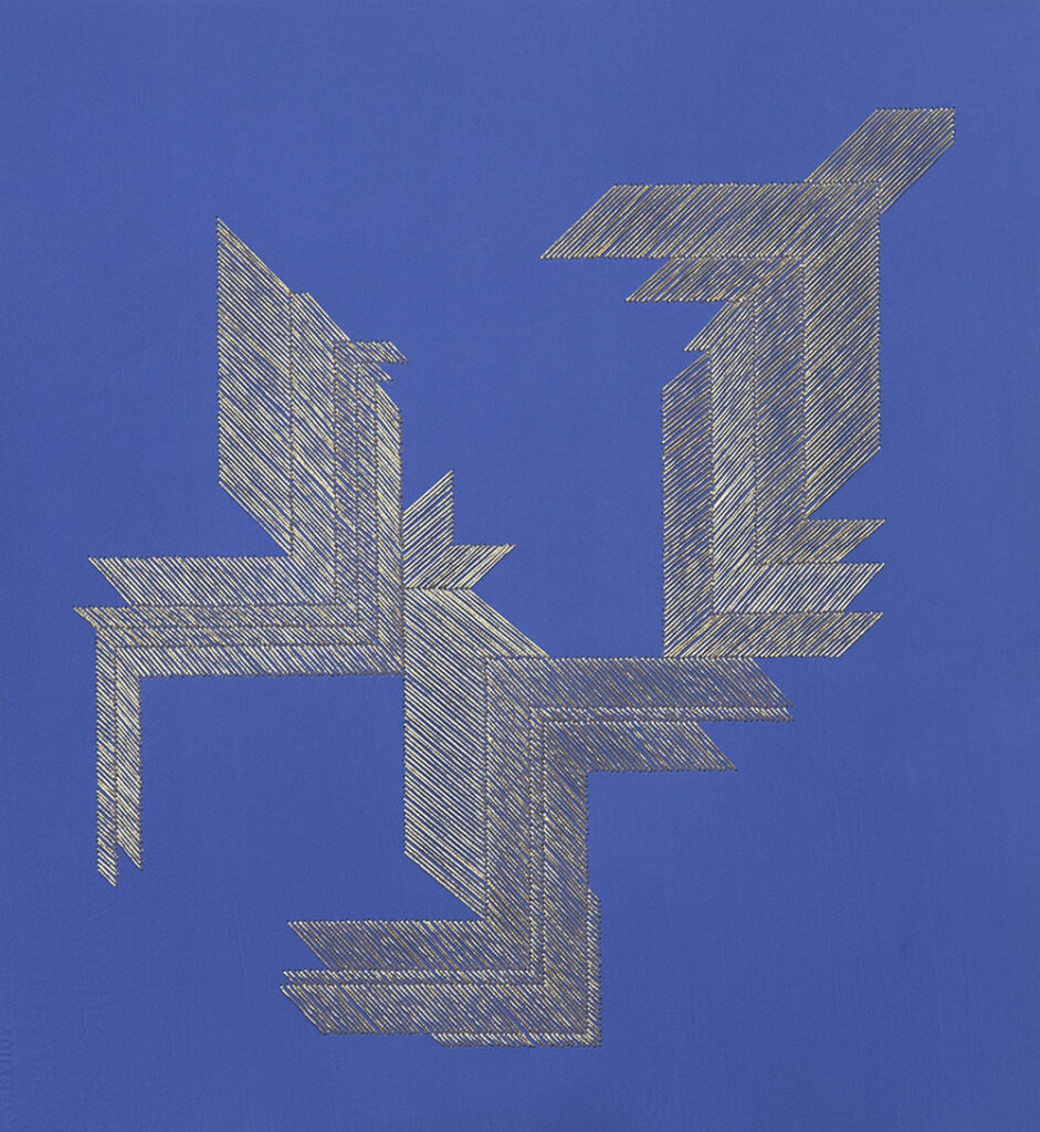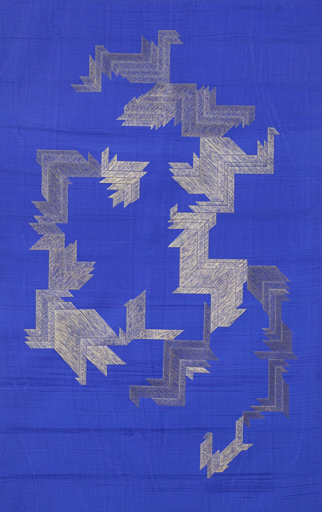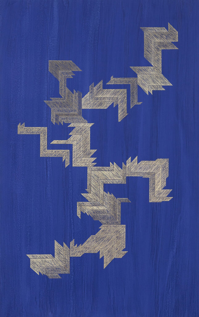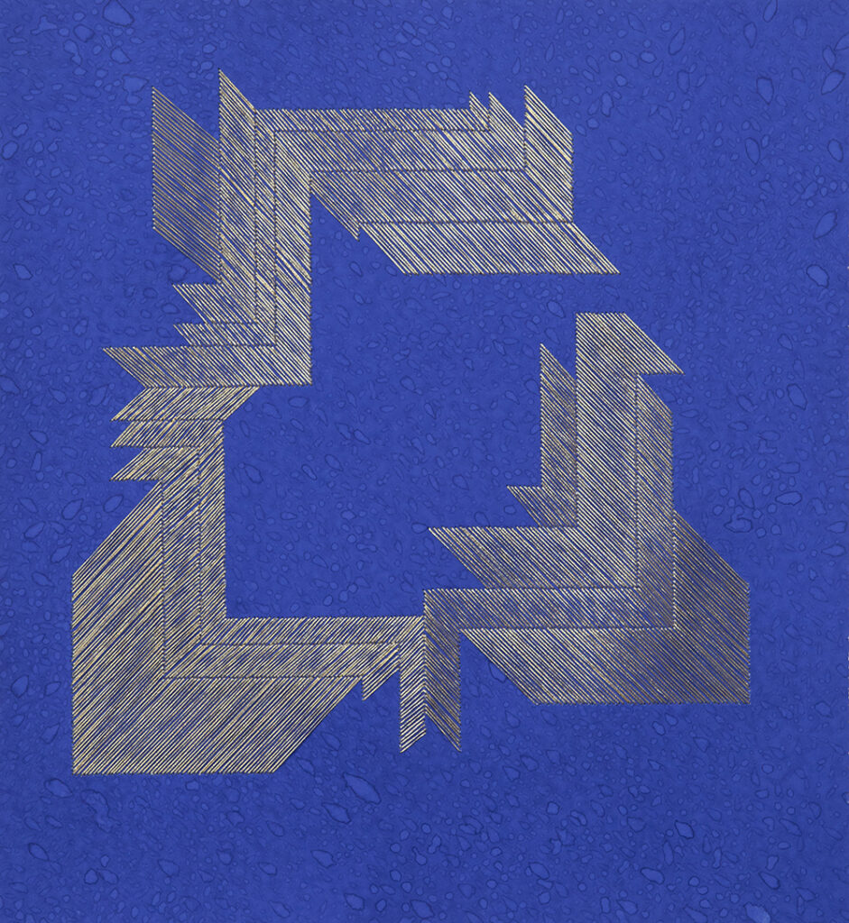 عبدالرضا امینلاری، بدون عنوان (۲۱.۰۰۳)، گواش و نخ طلای ۲۴ عیار روی کاغذ، ۶۲.۸×۹۹ سانتیمتر، ۱۳۹۹