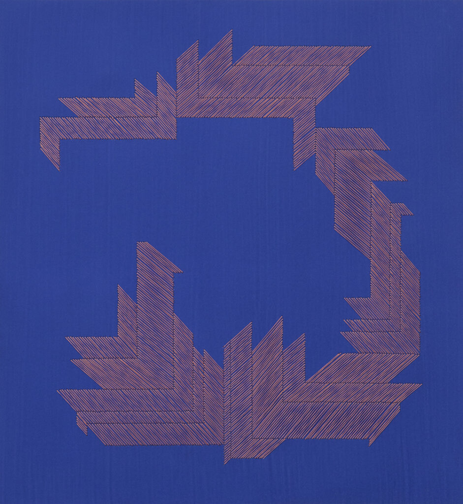 عبدالرضا امینلاری، بدون عنوان (۲۱.۰۰۲)، گواش و نخ طلای ۲۴ عیار روی کاغذ، ۶۲.۸×۹۹ سانتیمتر، ۱۳۹۹