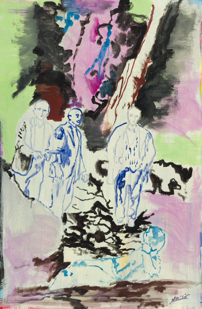 رها رئیسنیا، بدون عنوان، مرکب سومی، پاستل روغنی و کلاژ روی کاغذ، ۵۰×۴۰ سانتیمتر، ۱۳۹۱